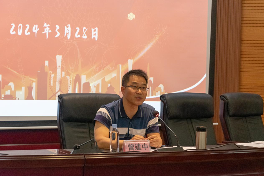 会上,曾建中代表学院向所有受到表彰的优秀个人表示热烈的祝贺,并向砥砺耕耘在教育教学一线的广大教师们表示崇高敬意和由衷感谢。此外,曾建中向同学们提出三点希望:一是要志存高远,怀揣梦想。希望同学们要立足现在,展望未来,设定好自己的人生目标,勇往直前,不断超越自我,展现出自己的才华和潜力。二是要见贤思齐,比肩优秀。希望同学们能够虚心学习,汲取他们的成功经验和方法,不断提高自己的能力和水平,积极营造比学赶超的氛围,形成一种积极向上的学习风气。三是要勤学苦练,勇于担当。希望同学们要不断提高自己的专业素养和实践能力,练就过硬本领,积极参与社会实践和志愿服务等活动,锤炼自己的意志品质和团队协作精神,为学校和社会的发展做出自己的贡献。