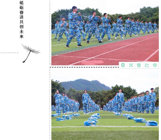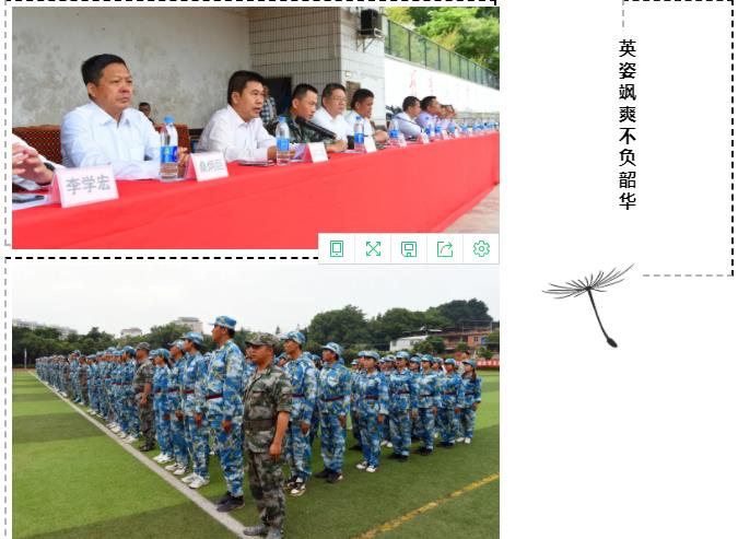 训练场上,你看,军姿笔挺!你听,战歌嘹亮!从稍息、立正、跨立、蹲下、敬礼、齐步走……,从太阳初升到夜幕降临,从烈日当空到大风大雨,同学们始终以饱满的精神、精益求精的态度认真完成每一次训练,在上百次的练习中,增强规矩意识,锤炼意志品质,用汗水书写着自己的迷彩青春。