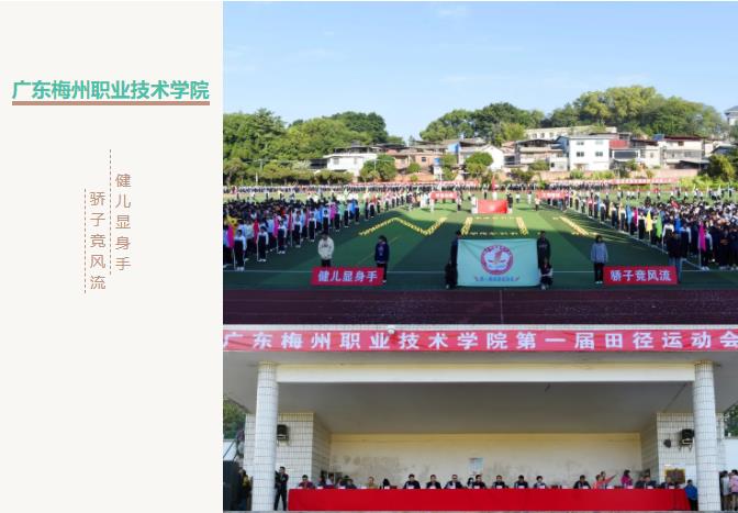 丹桂蜜柚正当时,蓝天白云相映衬,田径场上展新姿,莘莘学子竞风流。正值中国共产党百年华诞,正值我校深入学习贯彻党的十九届六中全会精神之际,我们满怀喜悦、满怀激情地迎来了广东梅州职业技术学院第一届田径运动会!这是一个“更高、更快、更强”的体育盛会,是展现我校教育教学成果、展示师生精神风貌的一场盛会,是奋发向上、继往开来的一届盛会。