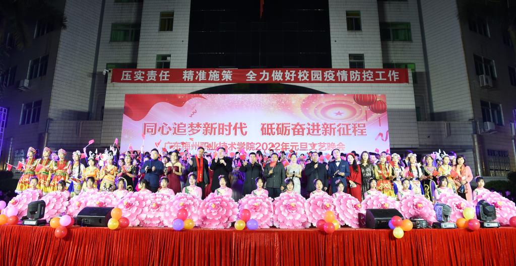 瑞狮欢舞歌盛世,师生同台迎新年。2021年12月28日晚,广东梅州职业技术学院在科学馆广场举行了2022年“同心追梦新时代,砥砺奋进新征程”元旦文艺晚会,全校师生欢聚一堂,共同迎接新年的到来。