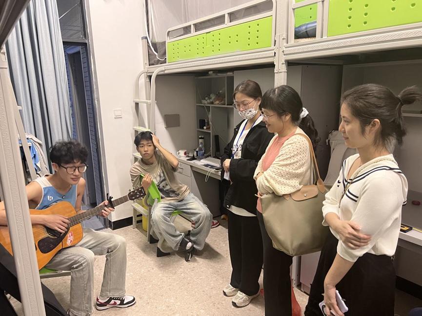图八:学院书记与班子成员进宿舍看望新生