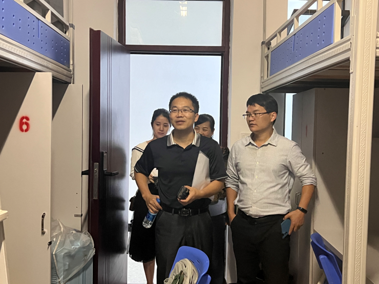 图九:学院书记与班子成员查看宿舍内环境