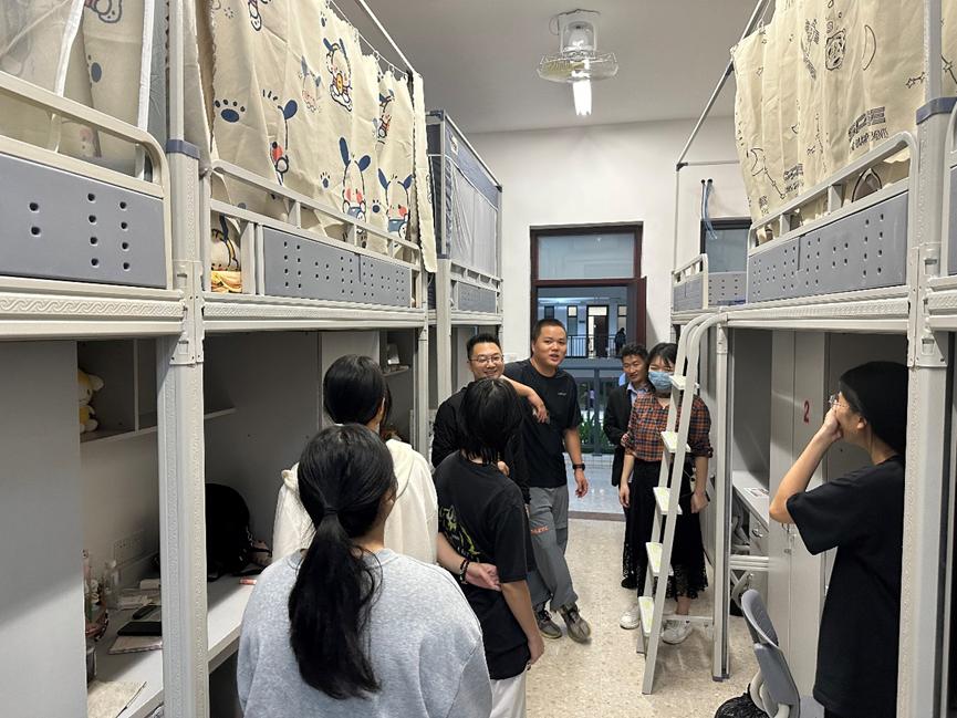 深秋的傍晚凉风习习,新生宿舍的大门迎来了温情一幕。学院领导、班主任、辅导员深入班级宿舍,积极与学生们沟通和互动,了解学生思想动态,及时解决学生学习生活中遇到的困难,帮助学生形成归属感,尽快适应新环境。老师们脸上洋溢着亲切的笑意,学生们也都露出会心的笑容,这初来乍到的陌生环境,也被丝丝暖意所填满……