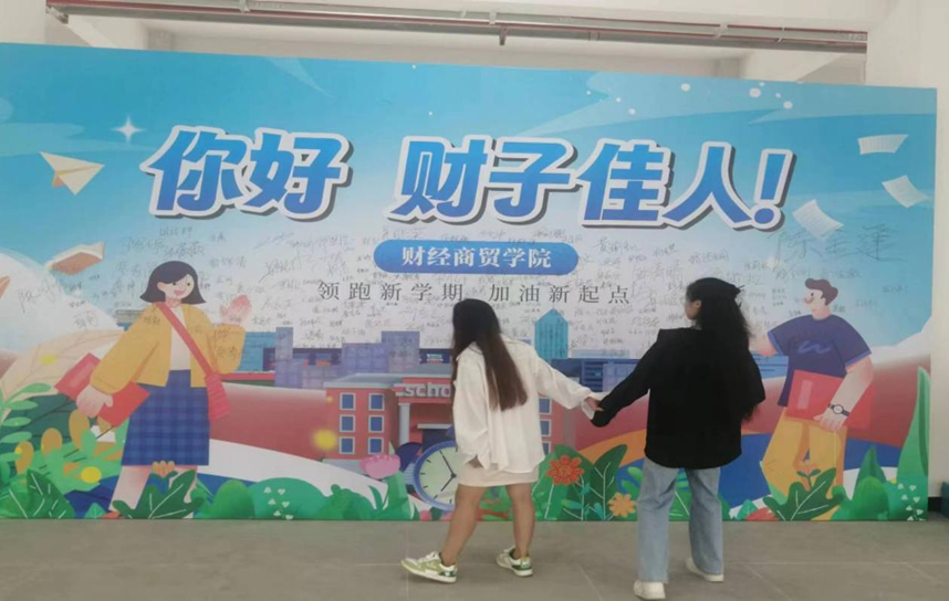 新生们接受新闻媒体采访时纷纷表示财经商贸学院是他们心仪的选择,畅谈了对未来学习生活的规划与期望。在这启程时刻,新同学纷纷激动地在海报上签下自己的名字,在学院布置的打卡点相框前留下照片,分享美好心情。